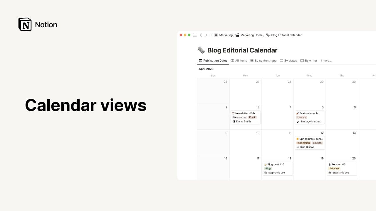 데이터베이스의 이벤트를 다른 약속, 회의, 계획과 함께 관리하고 싶으신가요? Notion 데이터베이스를 Notion 캘린더에 추가하면 중요한 날짜를 모두 한 곳에서 볼 수 있어요! Notion 캘린더에서 바로 데이터베이스 날짜를 업데이트할 수도 있답니다. 여기에서 자세한 방법을 알아보세요 →